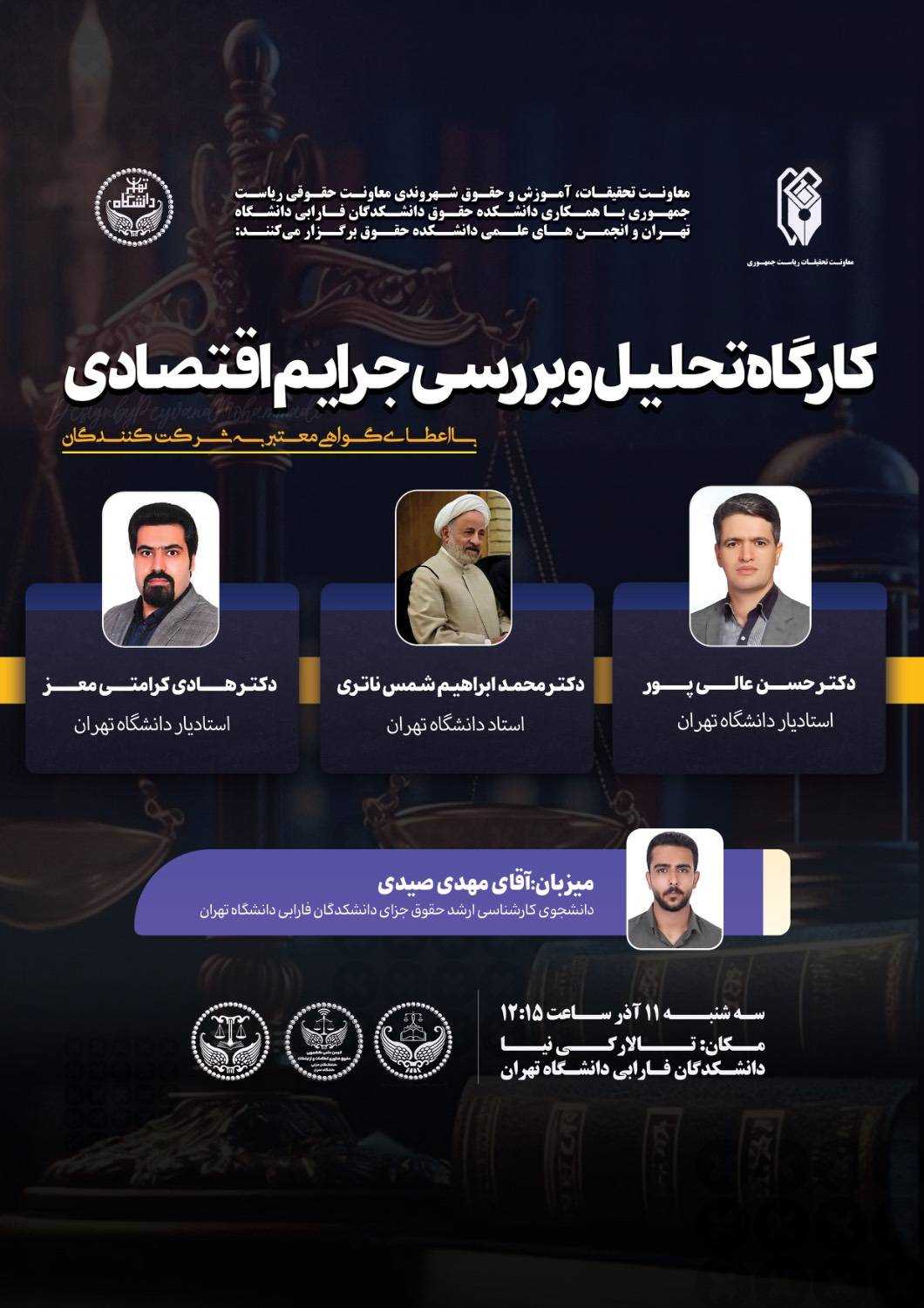 به همت معاونت تحقیقات، آموزش و حقوق شهروندی معاونت حقوقی رئیس جمهور، کارگاه تحلیل و بررسی جرایم اقتصادی برگزار می شود